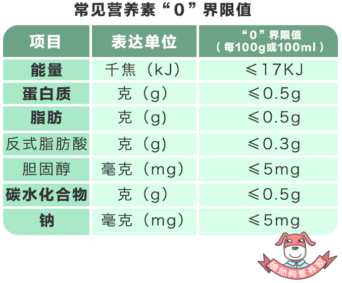 这也就意味着,上面的薯片标注反式脂肪酸为0,其实并不是为0,而是≤0.3g。没错,在健康问题上,狗狗就是这么较真。